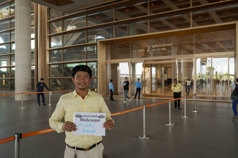Your driver will meet you at the Arrivals area at Phnom Penh International Airport (KTI), holding a sign with your name under the Connect Cambodia brand. We monitor your flight to ensure timely pickup, even if your flight is delayed.