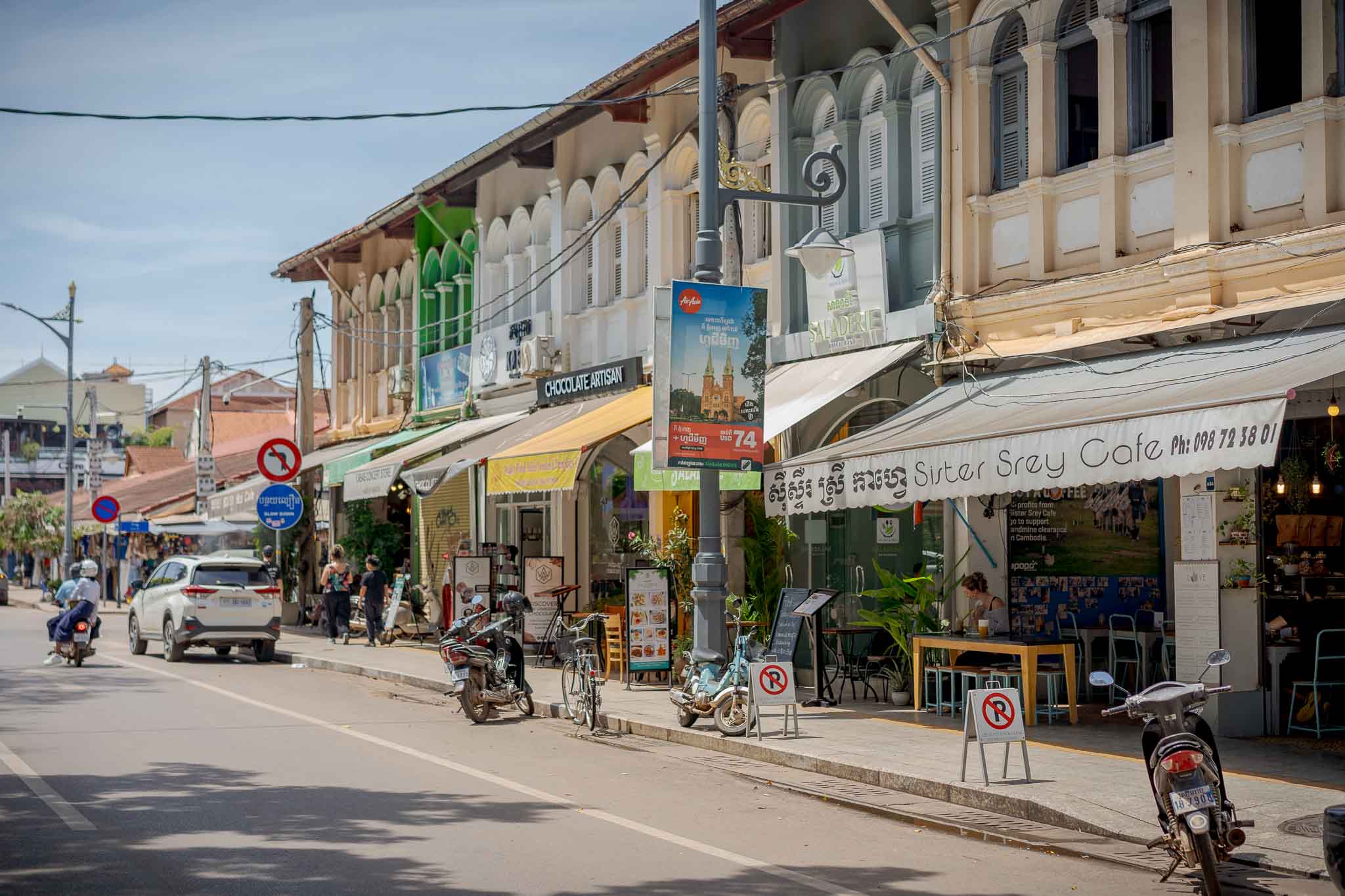 Just along the riverside near FCC Angkor, this small stretch of Pokambor Avenue is home to a cluster of boutique shops and galleries, all located right next to each other. It’s a quieter, more refined area of Siem Reap, ideal for a short walk combining shopping and art.